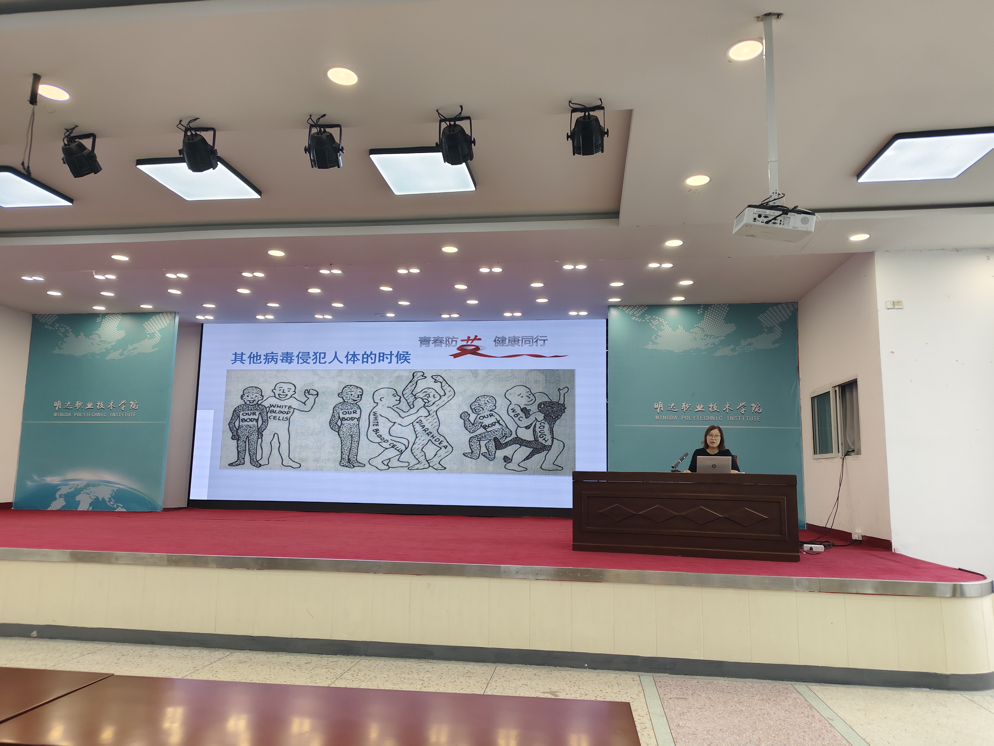 为进一步增强学生对艾滋病的认识,营造健康安全的校园环境,明达职业技术学院在会议中心成功举办防艾知识专题讲座,本次讲座由学校宣讲团韩世晨老师主讲。